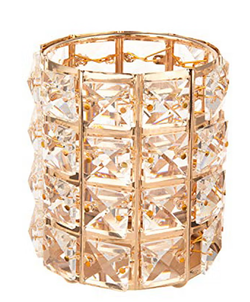 حامل لفرش المكياج بتصميم كريستالي ذهبي